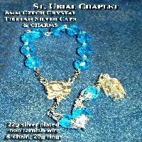 This chaplet consists of a medal or a charm of Saint Uriel, three beads in honor of The Sacred Heart of Jesus, and nine beads in honor of the nine Angelic Choirs.